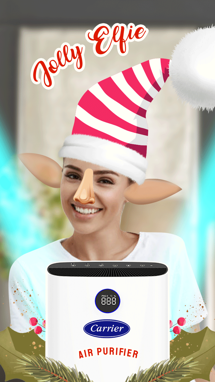 This is a Christmas holiday Facebook and Instagram AR Filter made from the Philippines. It was intended for a holiday give away in Instagram. This filter requires only one person in order to reveal the Elfie costumes with a purified air coming out from their product and feel the holiday spirit. The user can also take a picture, video, and save it directly into their phones or they can share it directly to Facebook or Instagram as part of their social media gallery.